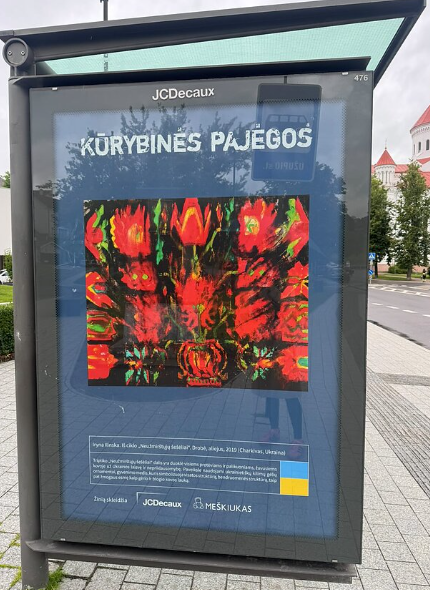 Проєкт, реалізований у міському просторі за підтримки компанії JCDecaux Lithuania та неурядової організації Meškiukas, представляє роботи українських художників, створені в умовах повномасштабної війни, розв’язаної Росією проти України.
