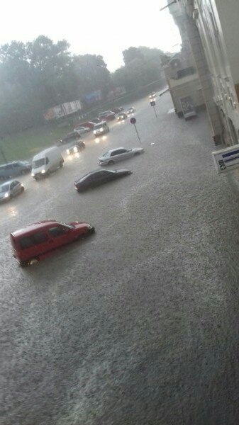 Тут утворилося справжнє брудне море, в якому авто тонули буквально по вікна. Деякі інші райони міста перетворилися на маленьку Венецію. Через сильну зливу у багатьох районах міста зникло світло, повалилися дерева, а вулиці заливали ріки брудної води.