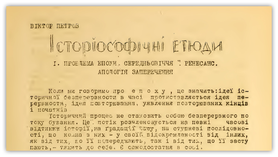 «Людство, спираючись на здобутки техніки, починає прагнути світових, неподільних істин. Істин монументальних, сталости в істині. Не особистих і хистких, а універсальних, не приватних, а соціяльних. Людство робить перші кроки, щоб надати істині не тільки раціональної, але й організованої обов’язковости…