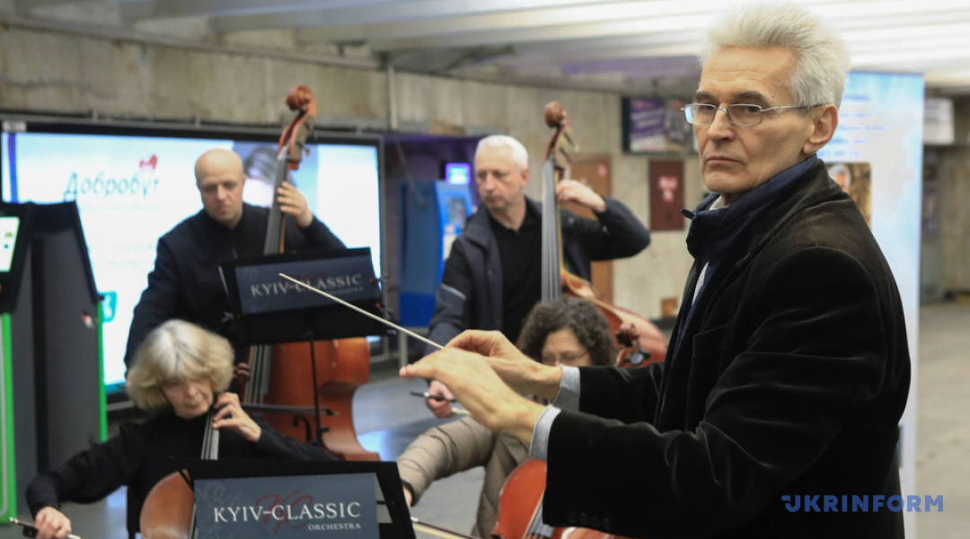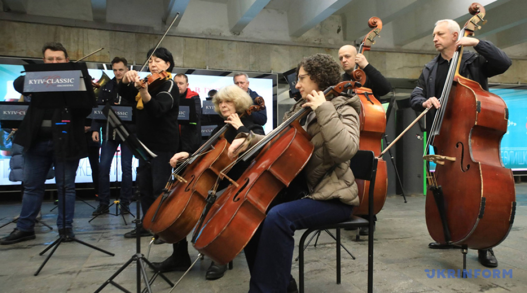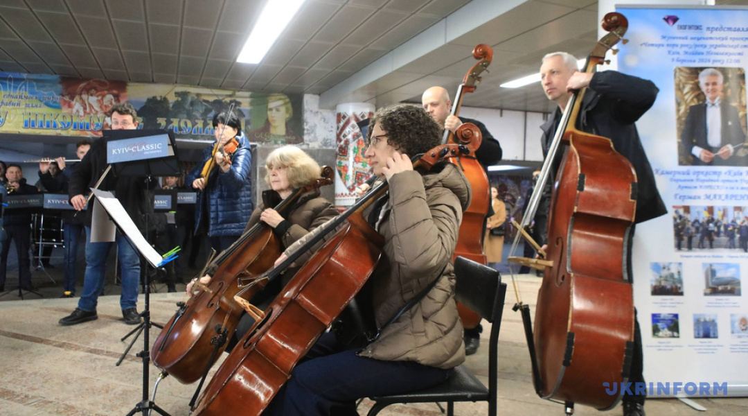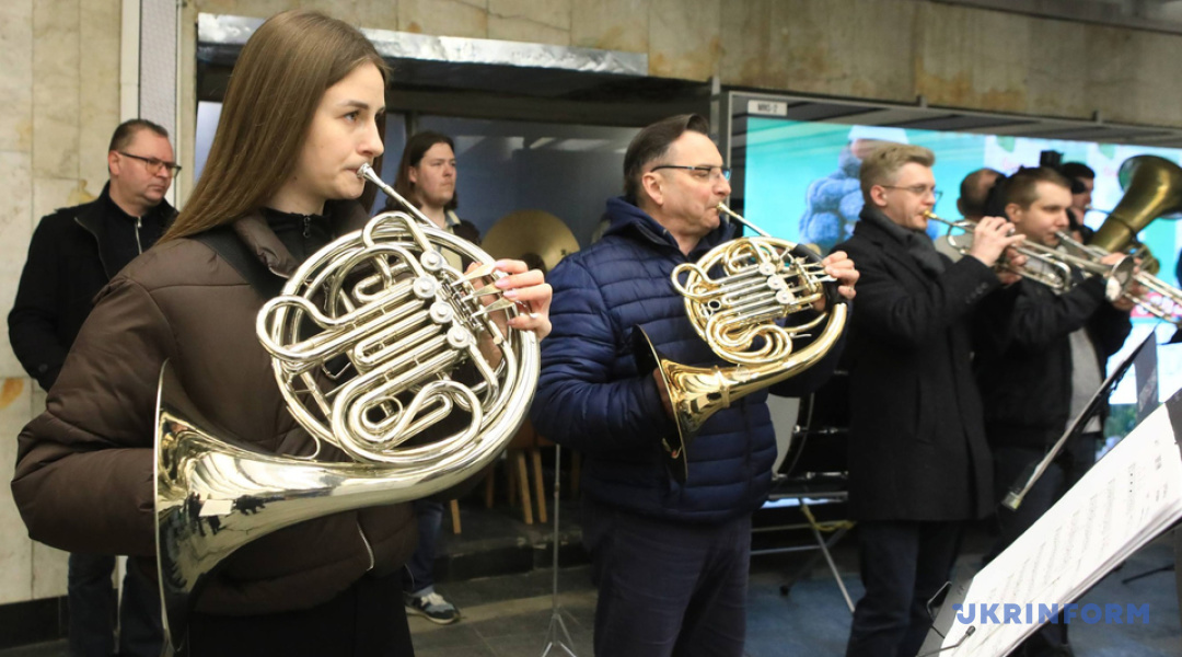 Музиканти виконали для перехожих і пасажирів столичного метро класичні твори українських композиторів та «Ой у лузі червона калина», який називають Гімном незламності українців.