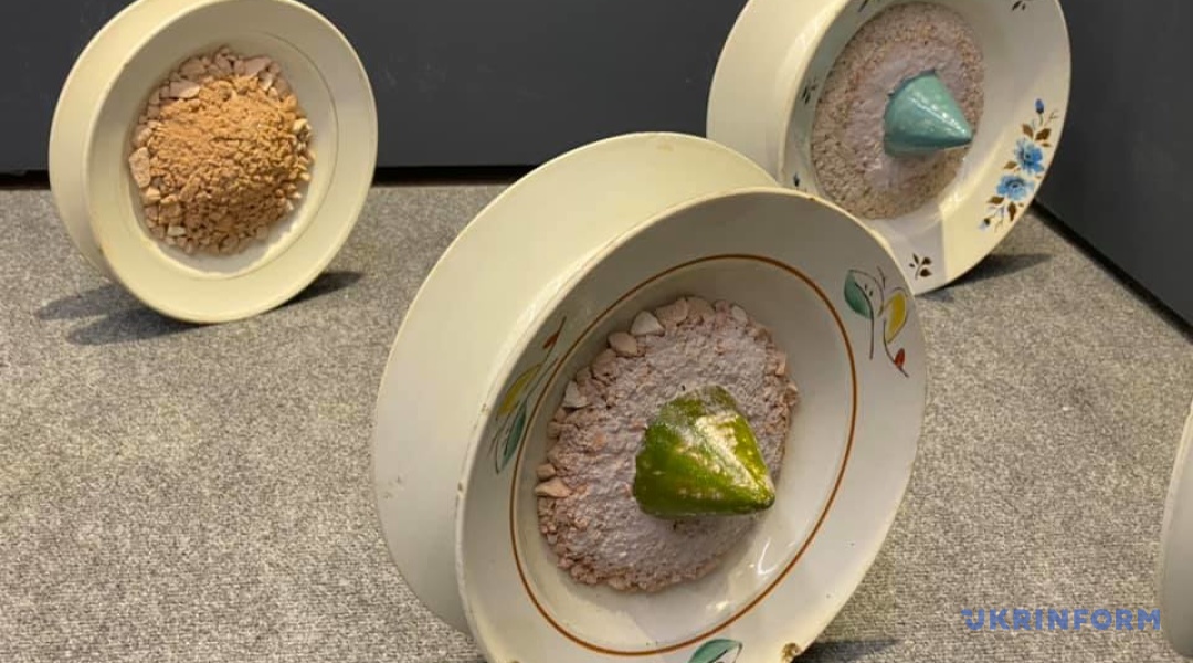 Ще одна інсталяція мисткині – «Котилися буди у блуди». Вона зроблена з тарілок, які колись вироблялися в Україні на заводах, які зараз закриті й не функціонують. Майстриня таким чином намагається привернути увагу до розвалених та знищених виробництв, необхідності відродження цього промислу в Україні.
