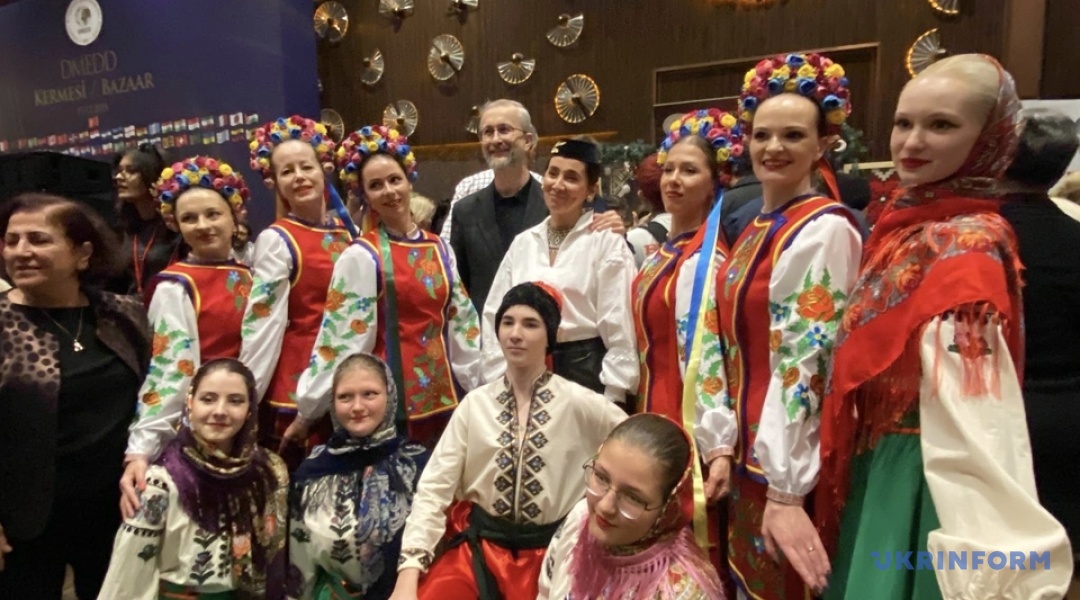 Самодіяльні творчі колективи, що діють при Українській спілці в Анкарі - танцювальний ансамбль “Квіти України” та хор “Роксолана” - представили на ярмарку танцювальні номери та виконали “Щедрика”.