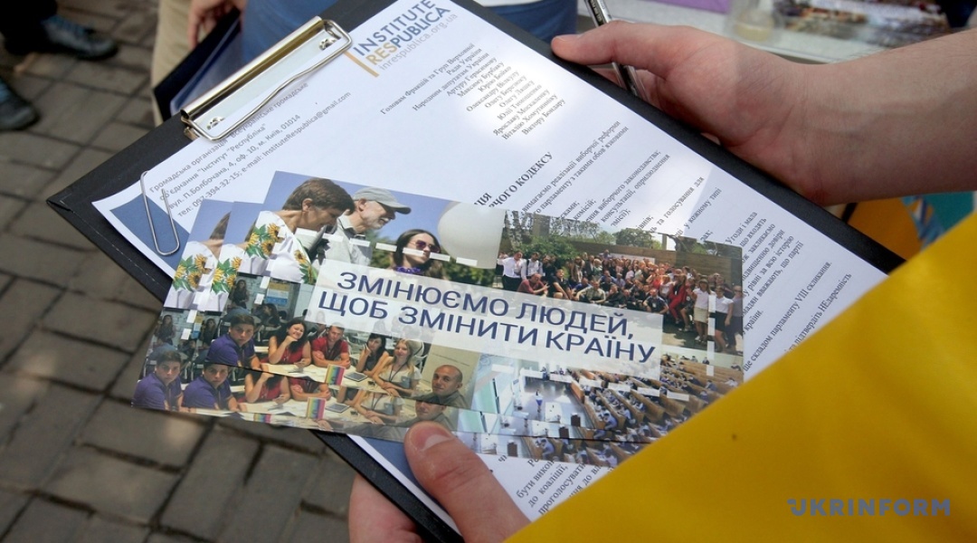 Також триває збір підписів на підтримку прийняття Виборчого кодексу, повідомляє кореспондент Укрінформу.