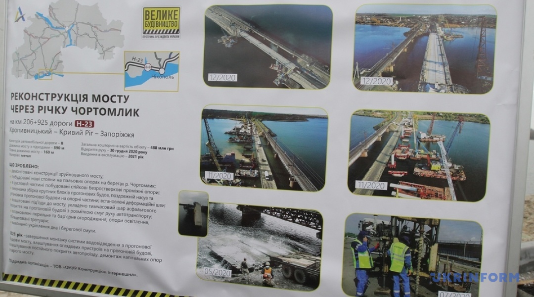 В Укравтодорі наголосили, що у 2021 році тут будуть завершені роботи з монтажу системи водовідведення з прогонової будови мосту, влаштування верхніх шарів дорожнього одягу, дорожньої розмітки та демонтаж залізобетонних руслових опор старого мосту.
