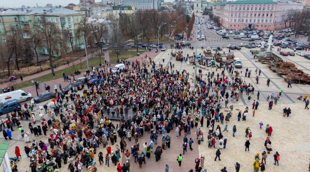 На Софійській площі учасники ходи виконали «Нова радість стала».
