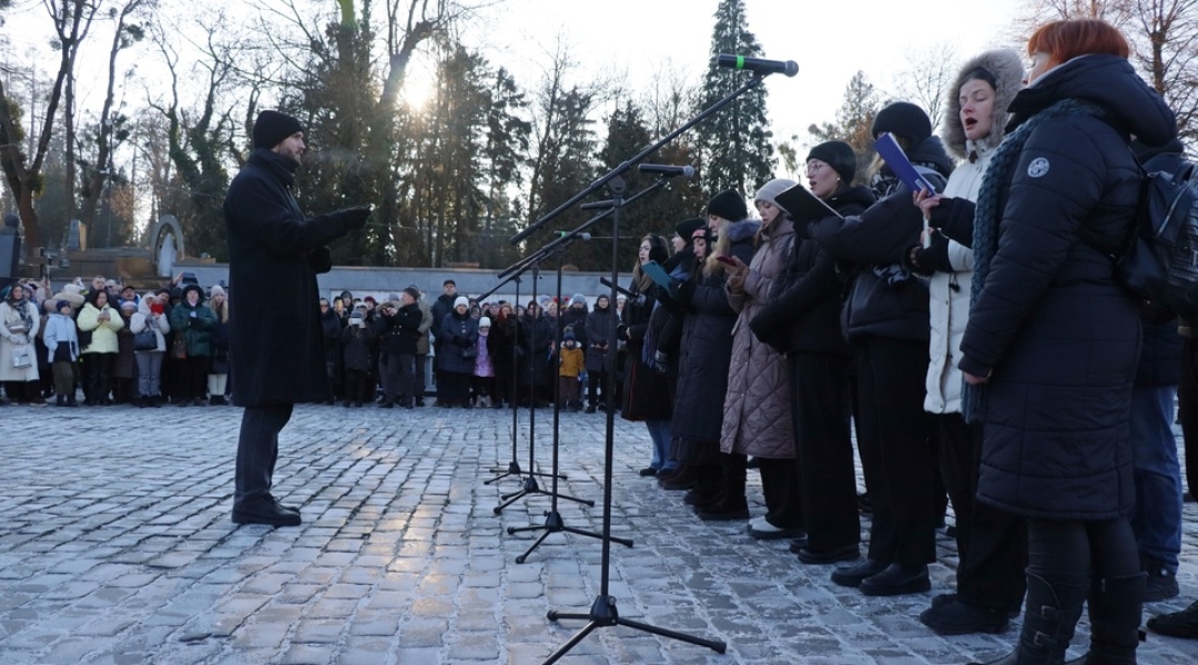 Скорботна коляда лунала на Полях почесних поховань, де спочивають Захисники і Захисниці України. Виконував колядки Львівський муніципальний хор «Гомін», який для цієї події підготував особливий репертуар.