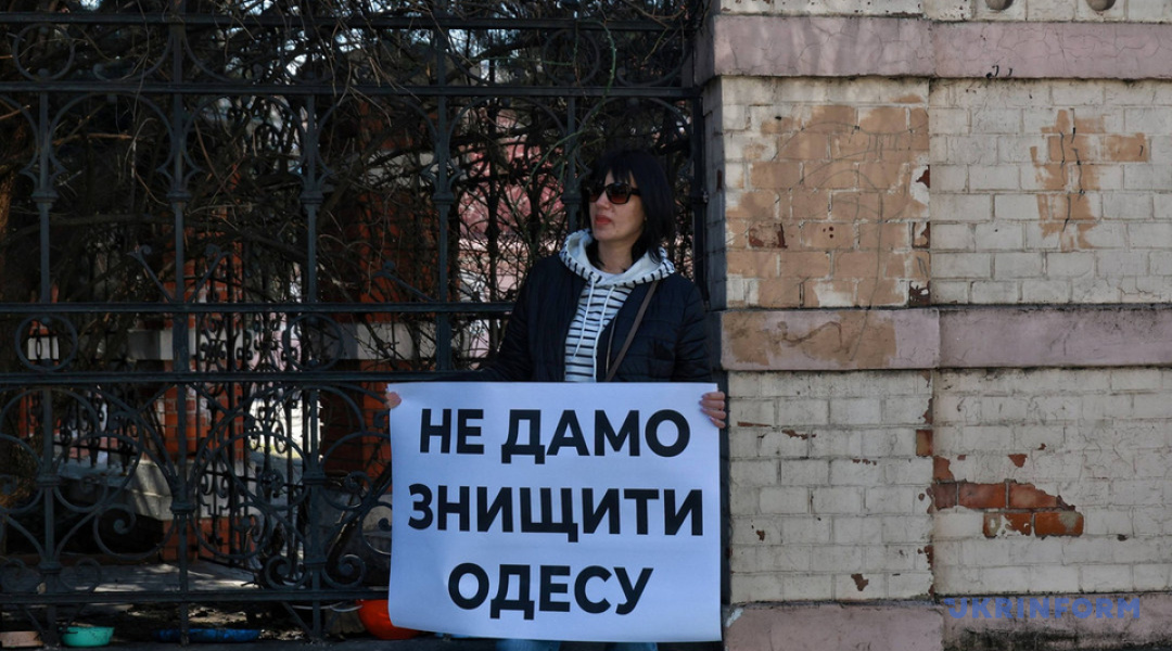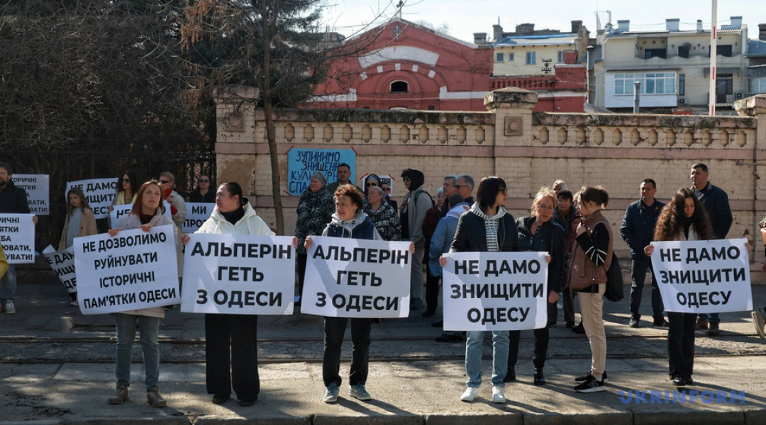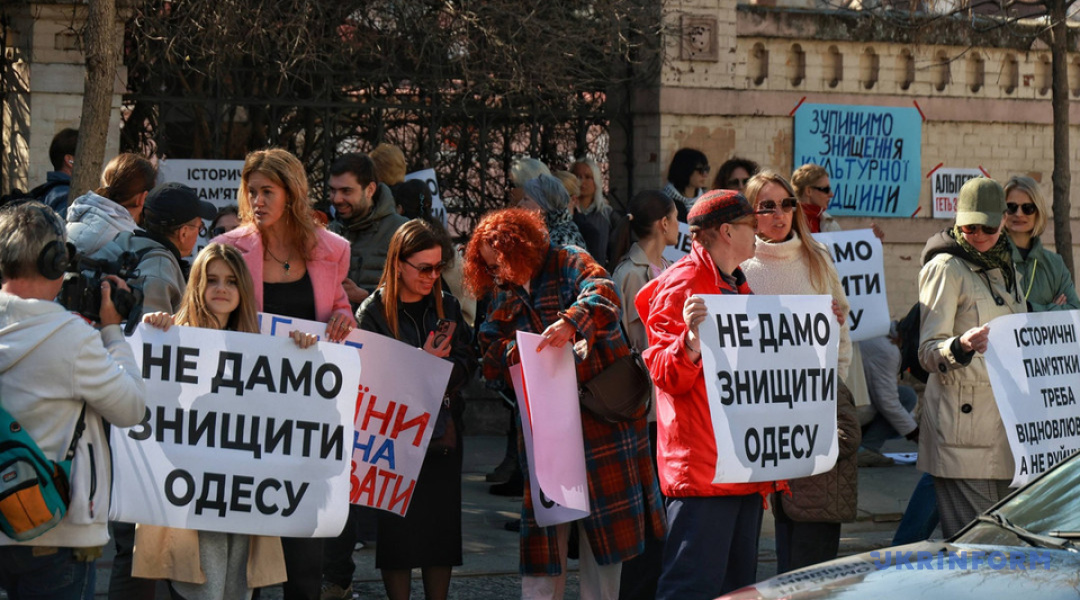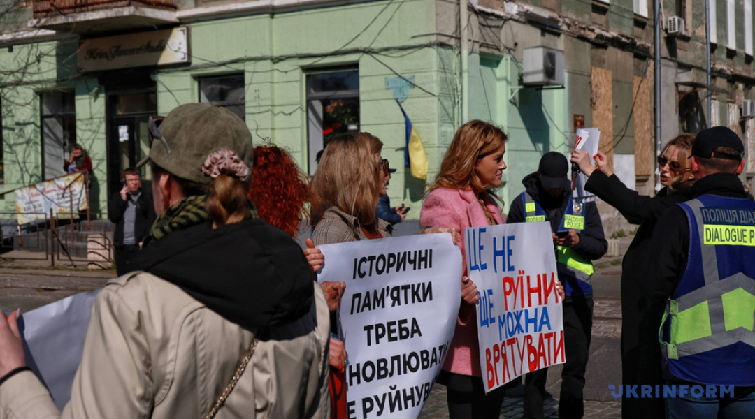 На акцію вийшли близько 100 одеситів. Люди тримали плакати з написами про необхідність збереження пам'яток архітектури.