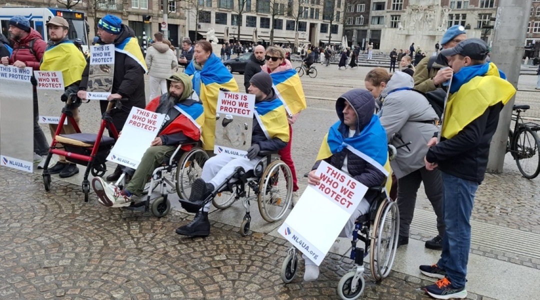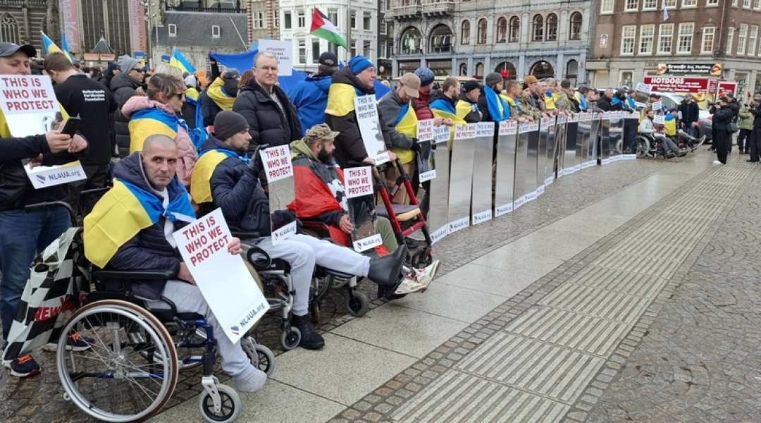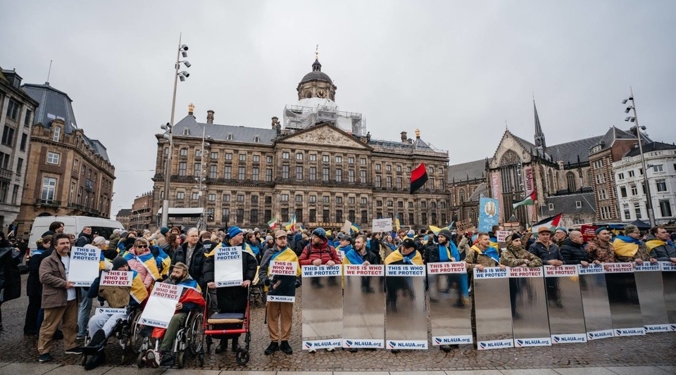 “Марш Солідарності, організований рухом Maidan to Dam проходить в Амстердамі вчетверте. І вже вдруге до цього приєднались українські захисники, що перебувають на реабілітації в Нідерландах. Цього разу, крім звичайних плакатів, вони несли дзеркальні банери з написом "This is who we protect", аби європейці могли відчути, що війна Росії в Україні стосується і їх особисто. Особливо зараз, коли всі в Нідерландах отримали від уряду попередження про формування тривожної валізки, а російські дрони регулярно залітають на територію Євросоюзу”, - зазначила в коментарі Укрінформу Катерина Габак, член ради правління фундації “Українська діаспора” та лідерка руху Maidan to Dam.