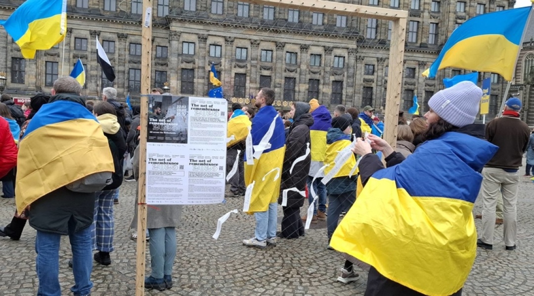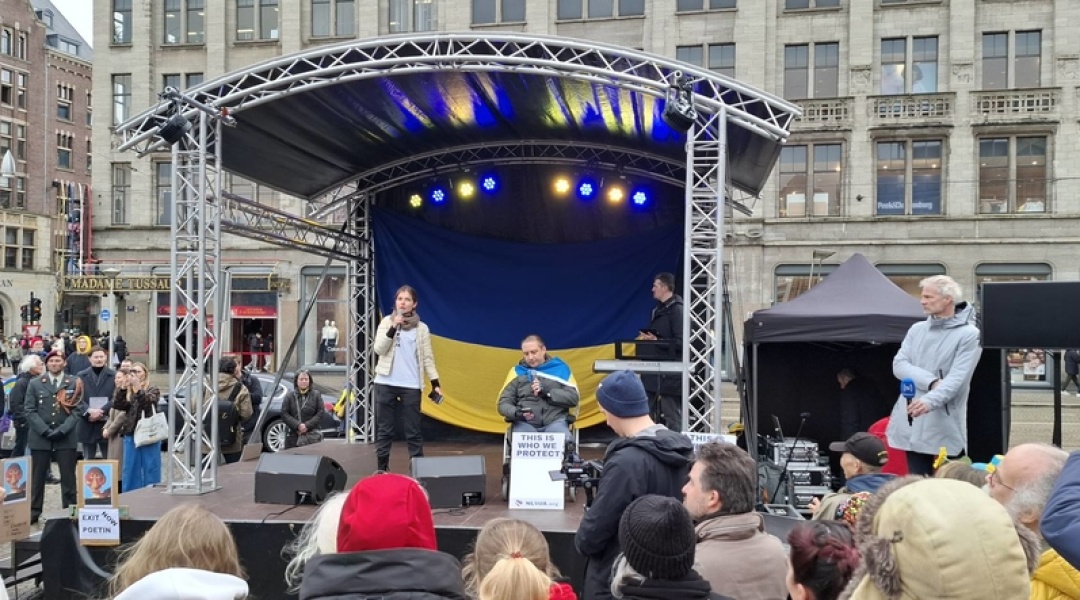 Українські військові пройшли ходою від Музейної площі до площі Дам у самому центрі Амстердама, де відбувся мітинг за участі посла України Андрія Костіна, глави МЗС Нідерландів Девіда ван Віла, міністра оборони Рубена Брекельманса, політиків і волонтерів.