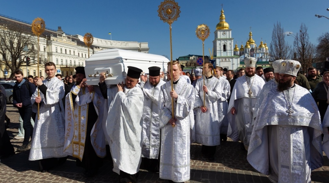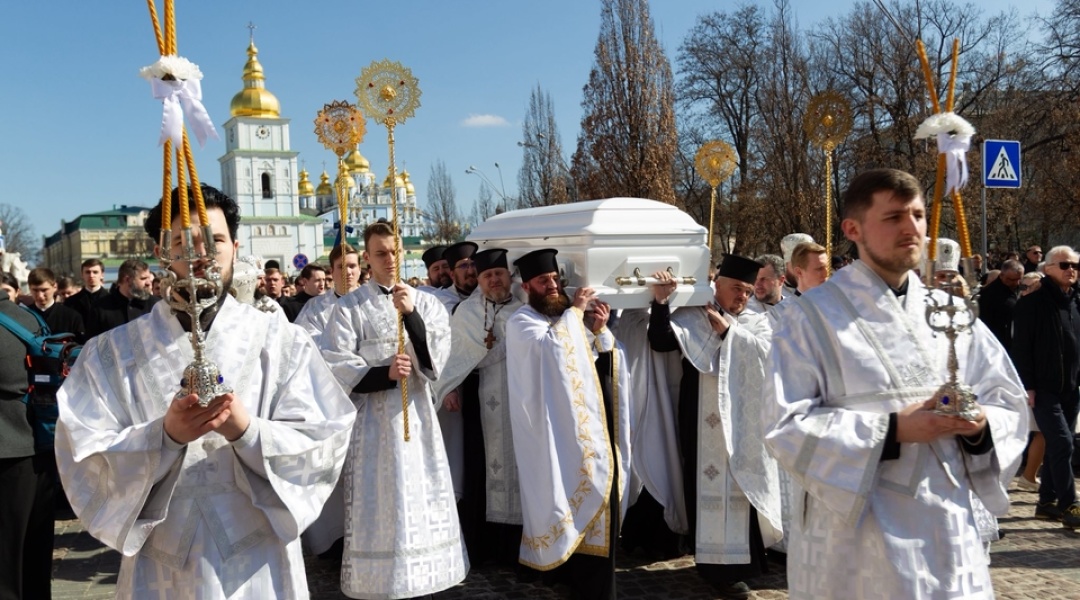 У Михайлівському Золотоверхому монастирі зранку 22 березня предстоятель Православної церкви України митрополит Епіфаній відслужив заупокійну літургію. Попрощатися прийшли сотні людей.