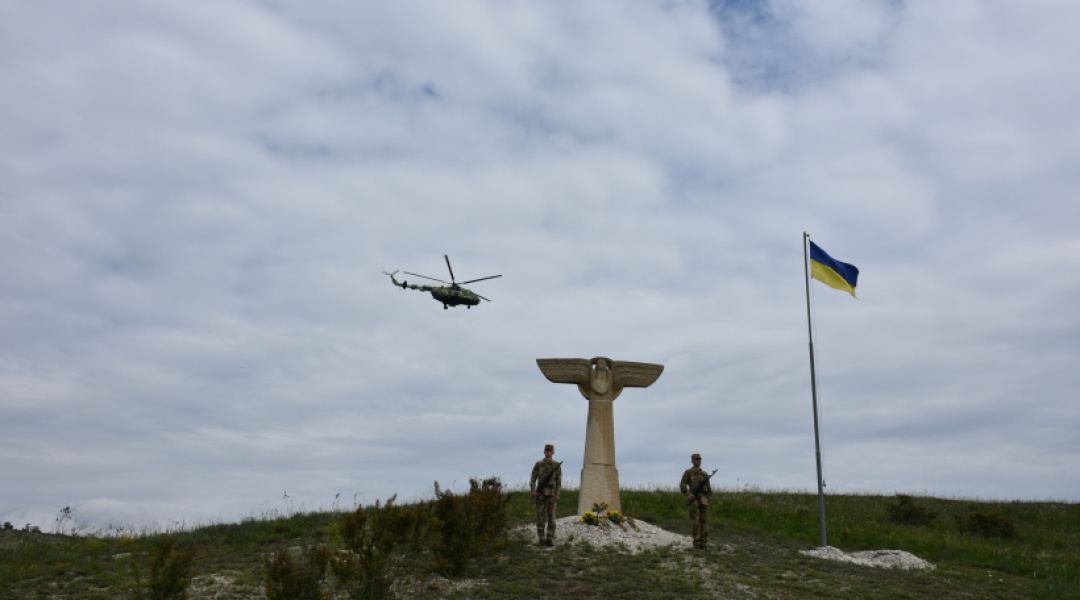 Зазначається, що також у пам’ять про загиблих над «Скорботним ангелом» пролетів військовий вертоліт.