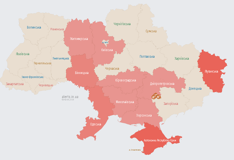 Повітряна тривога оголошена в дев'яти областях.