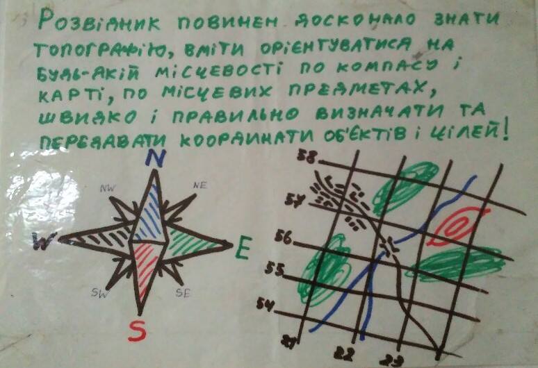 На малюнках – важливі моменти щодо ведення бою, навиків бійця та розвідника, якими мав натхнення поділитися «Скаут». «Розвідник повинен володіти навичками забезпечення життєдіяльності і виживання в екстремальних умовах». «Розвідник повинен досконало знати топографію, вміти орієнтуватися на будь-якій місцевості по компасу і карті, по місцевих предметах, швидко і правильно визначати та передавати координати обєктів і цілей!» «Не бачу - не стріляю» - означає, що не потрібно розстрілювати з переляку весь БК в білий світ! Веди чіткий прицільний вогонь короткими чергами і одиночними пострілами по вивлених цілях!»
