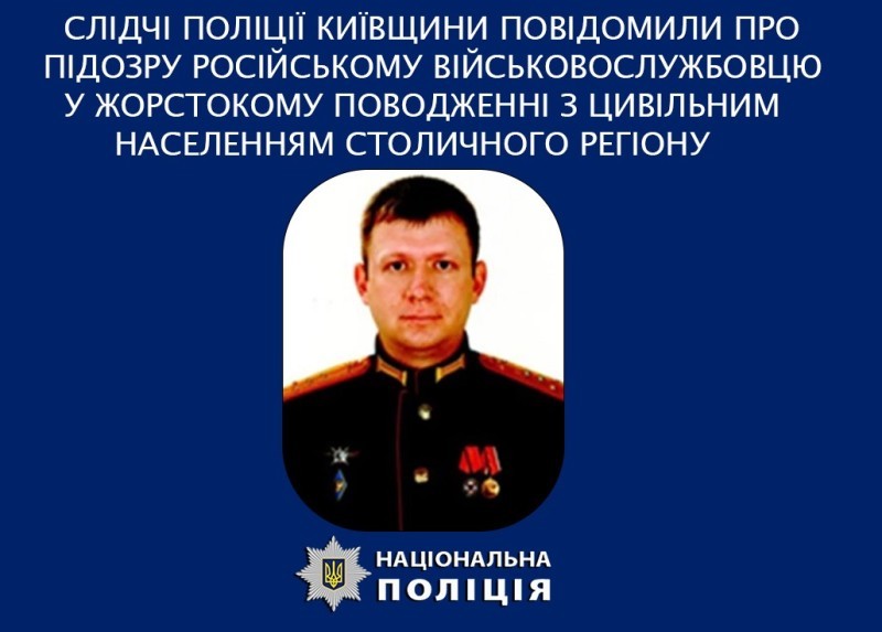 Слідчі слідчого управління поліції Київщини за процесуального керівництва Київської обласної прокуратури повідомили військовому РФ про підозру у жорстокому поводженні з цивільним населенням (ч. 1 ст. 438 Кримінального кодексу України).