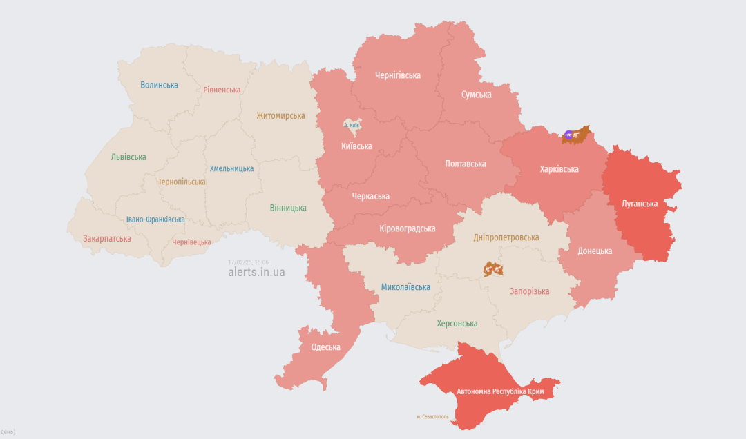 У Києві та ще низці регіонів України оголошували повітряну тривогу.
