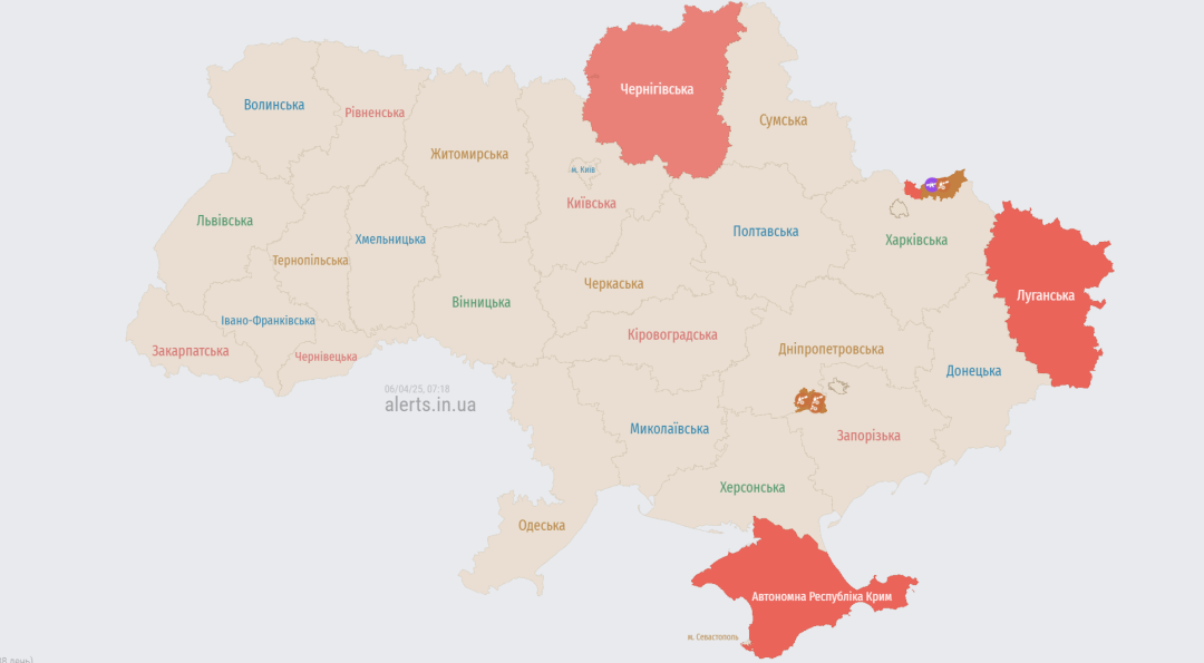 У низці областей України в ніч на 6 квітня була оголошена повітряна тривога загрозу застосування балістичного озброєння.