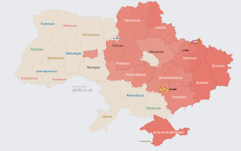 Про небезпеку в низці областей свідчить мапа повітряних тривог.