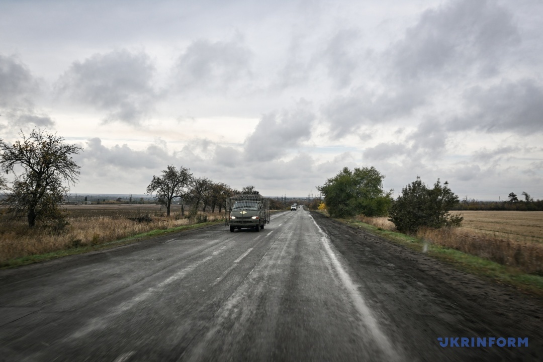 Познайомившись з усіма, вдягнувши захист, сідаємо в авто. Виїжджаємо з Покровського і чуємо волання сирен: оголошено повітряну тривогу, загроза пусків керованих авіаційних бомб саме в бік перетину областей. Тобто туди, куди ми, власне, і вирушили. У Сергія починають спрацьовувати сигналізатори – обладнання, яке сповіщає про наближення дронів.