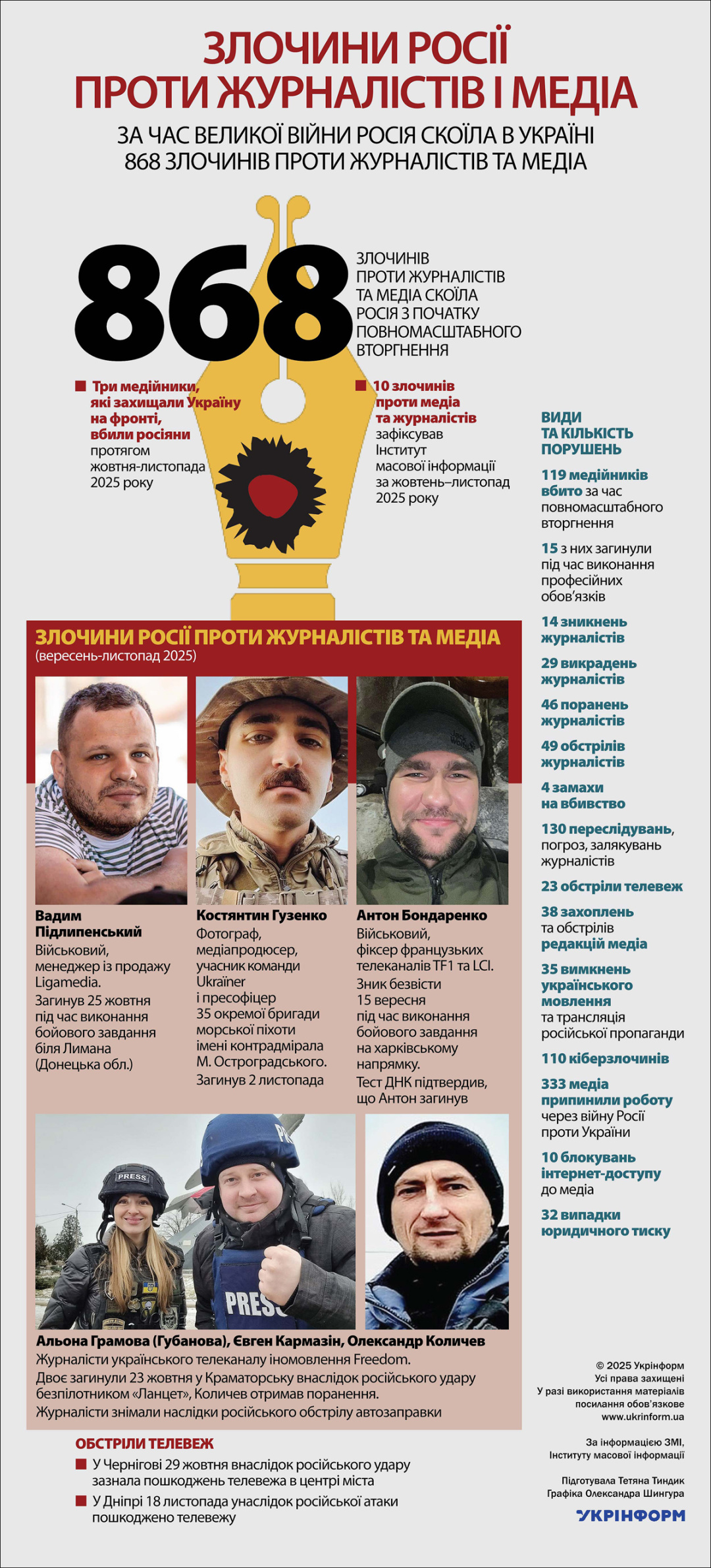 За час Великої війни Росія скоїла в Україні 868 злочинів проти журналістів та медіа