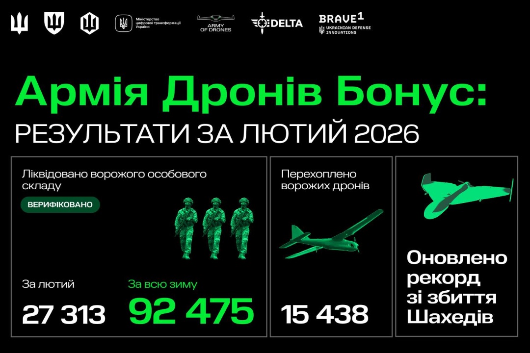 «Цієї зими Сили оборони ліквідували 92 475 російських військових. Дронами - 88 898 окупантів, решта - верифіковані на відео ураження артилерією», - зазначив він, уточнивши, що це верифіковані результати підрозділів у програмі "Армія дронів.Бонус".