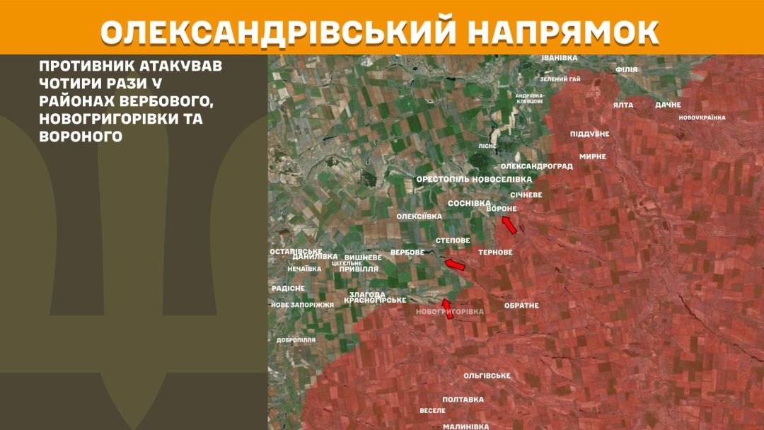 На Олександрівському напрямку росіяни атакували п’ять разів у районах Іванівки, Добропілля, Тернового, Березового, Нового Запоріжжя.