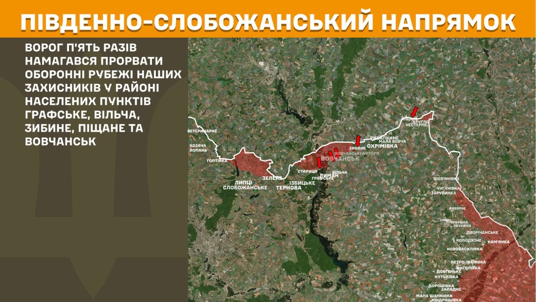 На Південно-Слобожанському напрямку загарбники тричі намагалися прорвати оборонні рубежі у бік Попівки та Лимана.