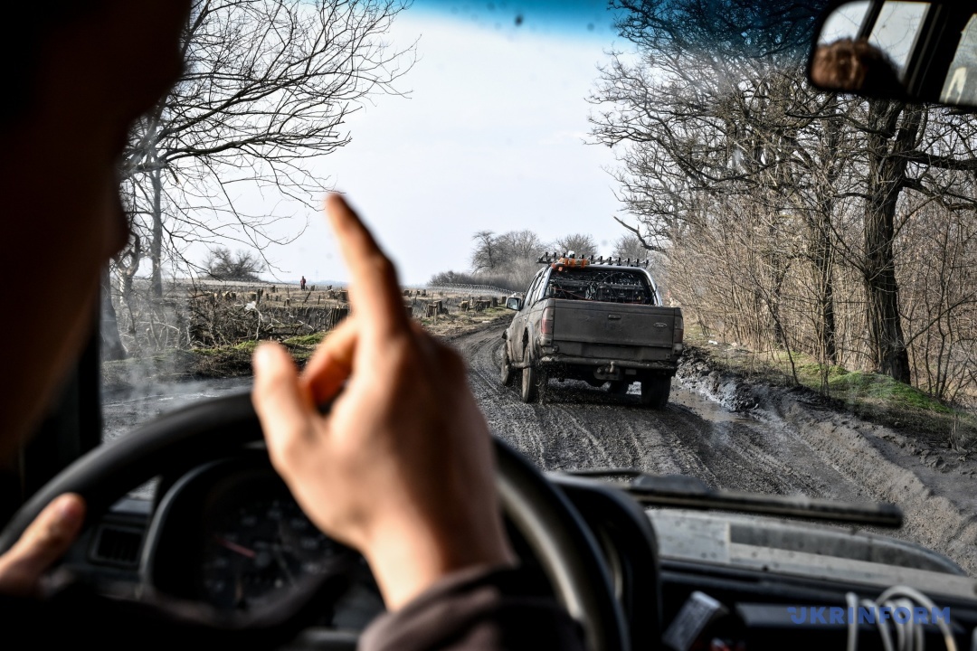 Журналісти “Укрінформу” побували в одному з підрозділів 141 окремої механізованої бригади. Зараз доїхати до військових – завдання підвищеної складності, подекуди – справжній квест на виживання. Поле – після дощу, перед нами вже хтось ним проїхав, “Урал” чи інша важка техніка. І тепер треба було заскочити в цю колію з багнюки, мчати з чималою швидкістю і при цьому не вилетіти з неї чи не перекинутись, бо витягати нікому.