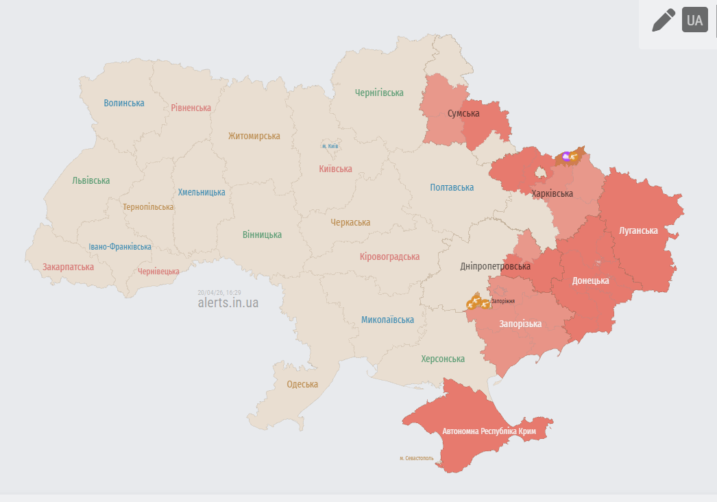 Про це свідчать дані Мапи повітряних тривог України, передає Укрінформ.