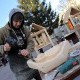 Дерев`яні композиції майстри створюють на очах у перехожих які підходять та розглядають роботи.