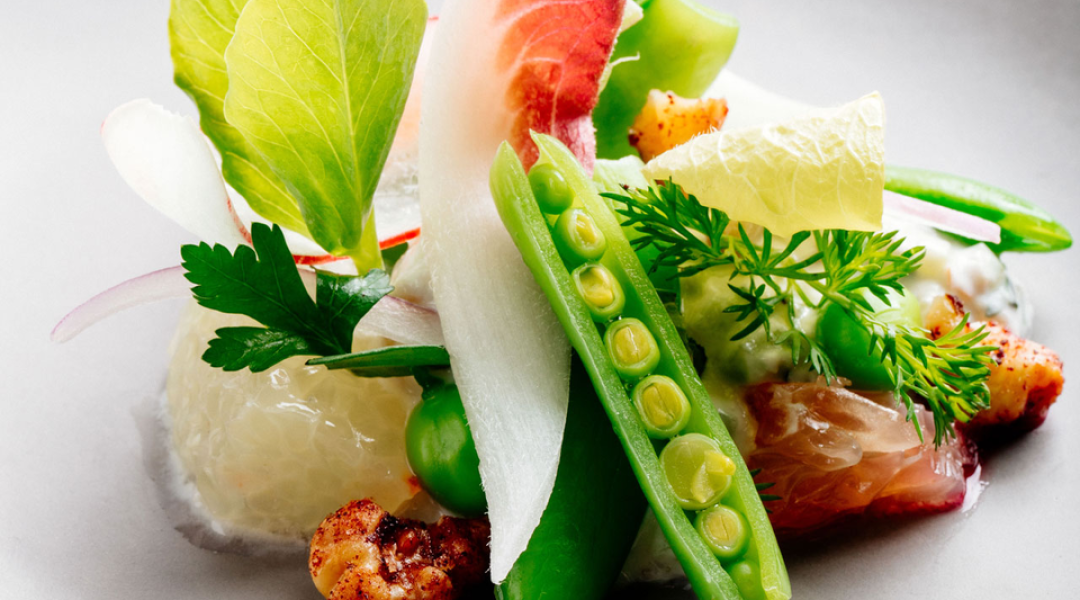 З основних страв гостям запропонують карамелізовану цвітну капусту, з родзинками, лаймом, кедровим горіхом; заморожений буряк з мигдальним заварним кремом, лимоном і салатом айсберг; салат з помело, азіатської груші, соусу цацики з сиром, м'ятою, волоським горіхом; хурму з хамоном, сиром буратта і дикою руколою.
