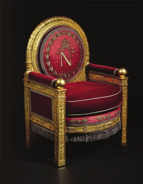 Як вказали в Osenat, крісло, продане на аукціоні, виконане в тому ж стилі, що і трон з Тюїльрі, проте трохи відрізняється від нього розмірами. Дерев'яні деталі покриті позолотою, а на спинці вишита монограма імператора ("N"), увінчана короною.