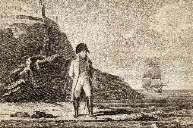 28 квітня 1814 року із містечка Сан-Рафаель на борту британського фрегата "Безстрашний" Наполеон Бонапарт вирушив у заслання на відокремлений острів Ельба в Тірренському морі, який став в 1802 році французьким володінням і наданий йому в довічне володіння.