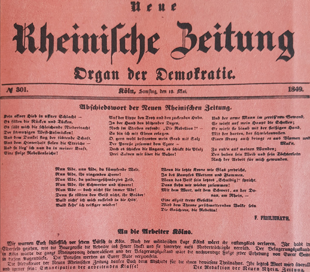 1 червня 1848 року в Кельні, Німеччина, Карл Маркс видав перший номер своєї газети "Neue Rheinische Zeitung" ("Нова Рейнська газета").