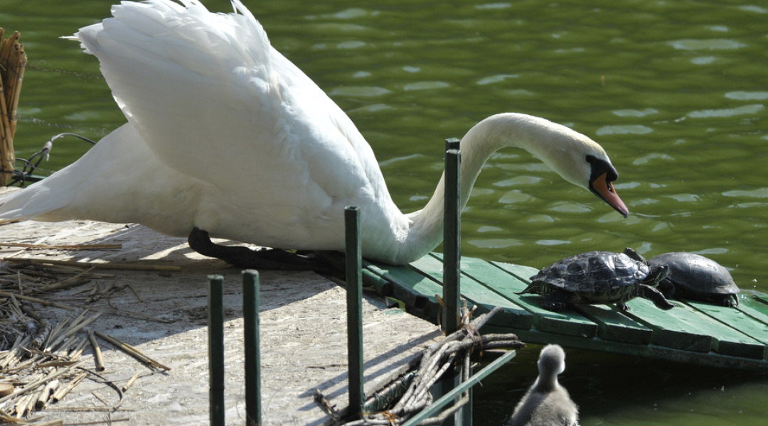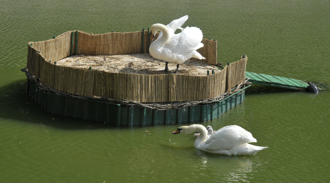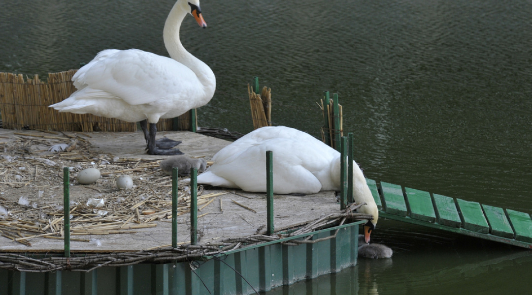 "Ми не піднімали рівень води у водоймі, щоб не налякати самку, поки вона сиділа на яйцях. Зараз, коли пташенята вилупилися, ми одразу піднімемо рівень. Навісом птахів взагалі не накривають, в ньому просто немає необхідності", - зазначив В'ячеслав Афанасенко.