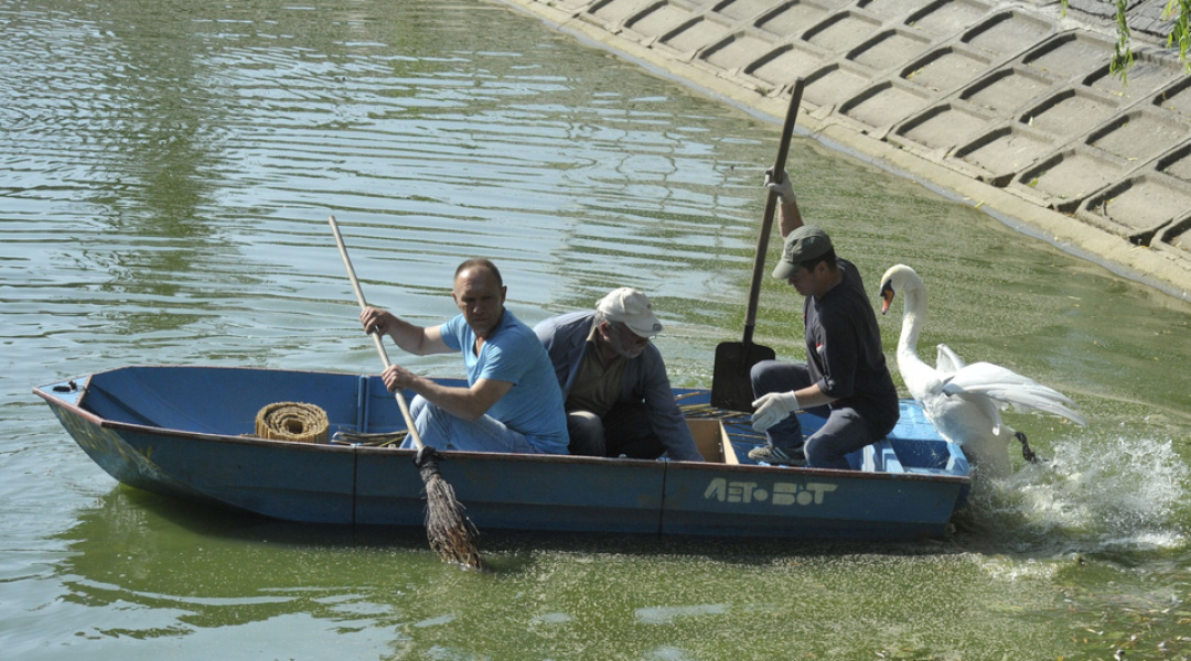 Технік міського комунального підприємства “Вінницязеленбуд” В'ячеслав Афанасенко розповів, що до установи неодноразово надходили звернення громадян про необхідність регулювання рівня води на озері та встановлення навісу над парою лебедів.