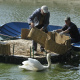 Сімейство лебедів пробуде в ставку до пізньої осені. Тоді їх разом з гніздом заберуть до вінницького зоопарку.