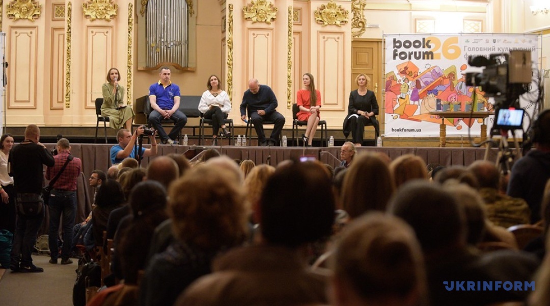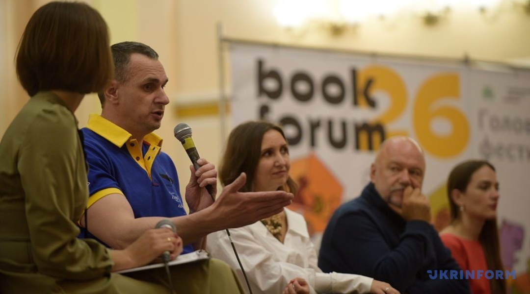 Сенцов презентував книгу "Маркетер"/ Фото: Маркіян Лисейко. Укрінформ