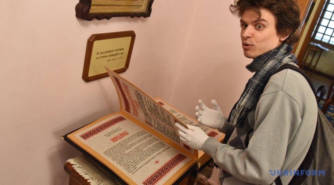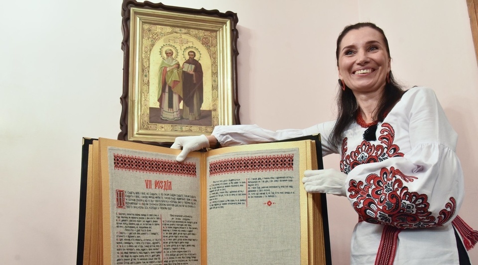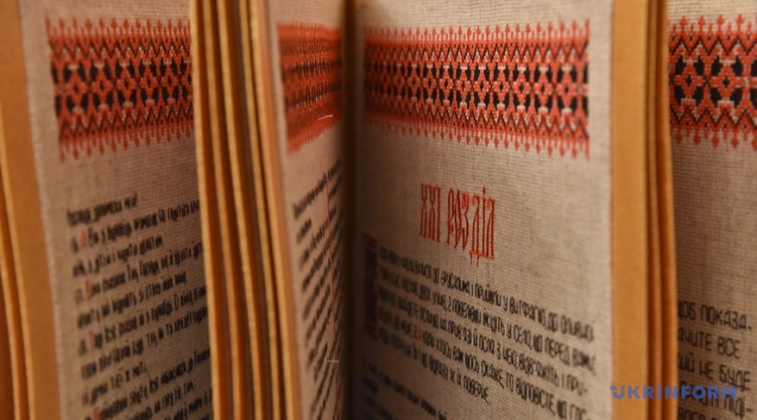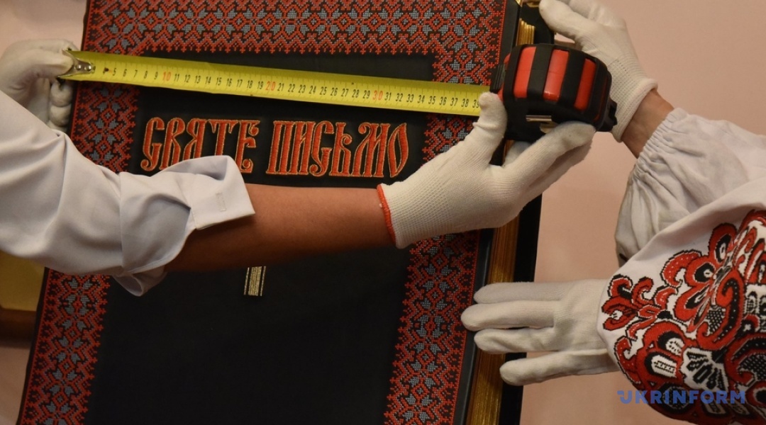 Найбільша вишита книга-фоліант ручної роботи / Фото: Олена Худякова. Укрінформ