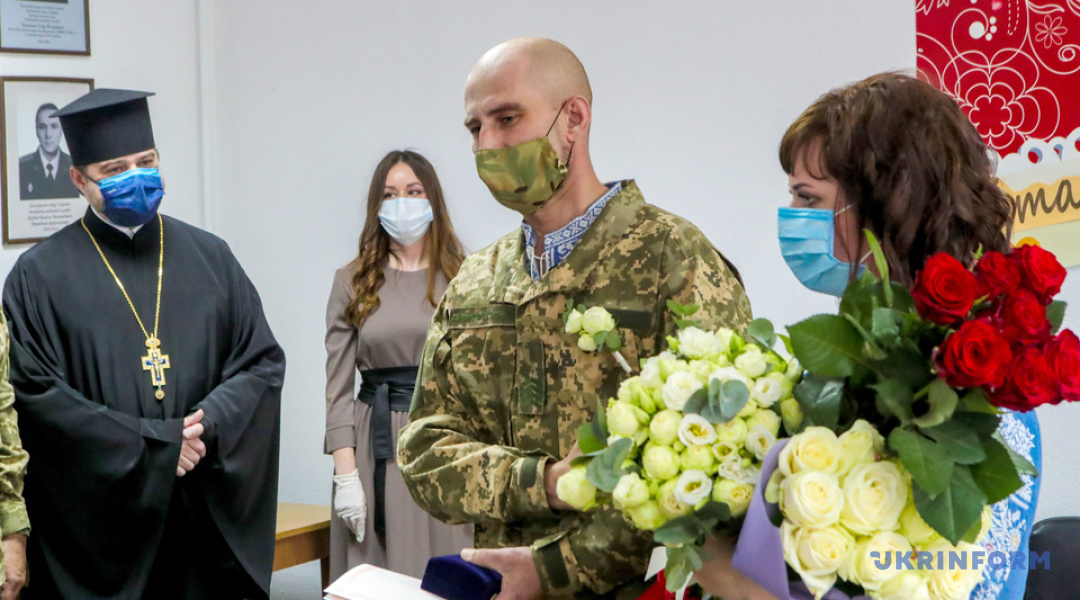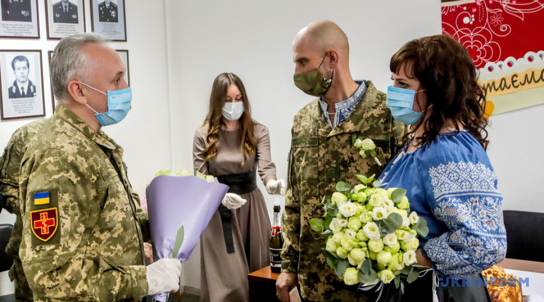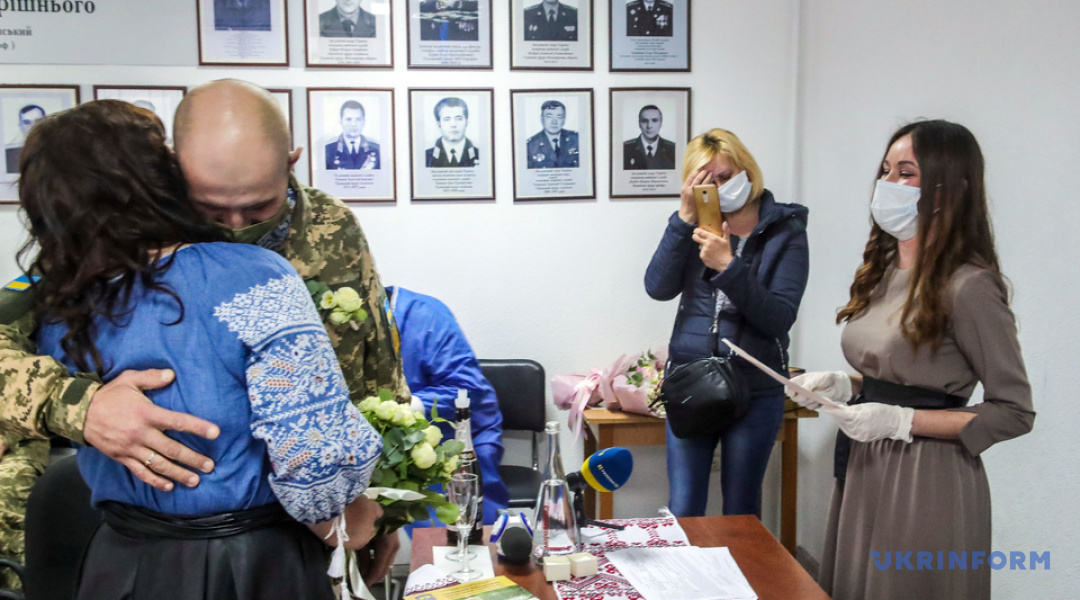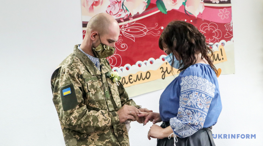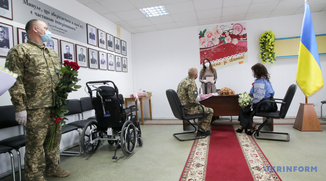Минуло лише три тижні після операції, а хлопець вже готовий повести свою наречену під вінець. Шлюбна церемонія відбулася у суботу, 2 травня, на території Національного військово-медичного клінічного центру “ГВКГ”.