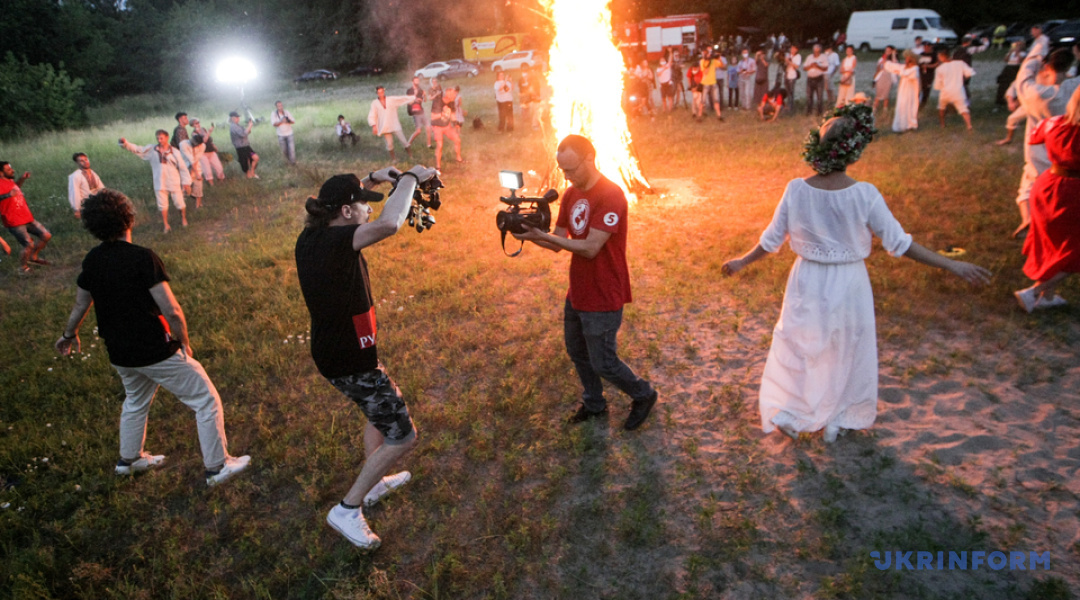 Також артисти запалили 5-ти метрове багаття, одягнули вінки, етнічні костюми та інші атрибути сакральної ночі на Івана Купала.
