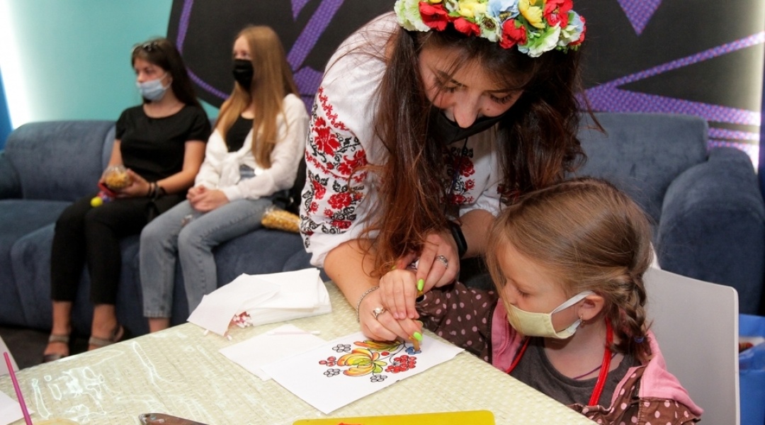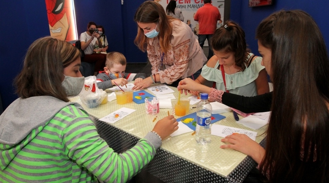 Перед показом фільму дітям запропонували майстер-клас з початкових навичок техніки Петриківського розпису.