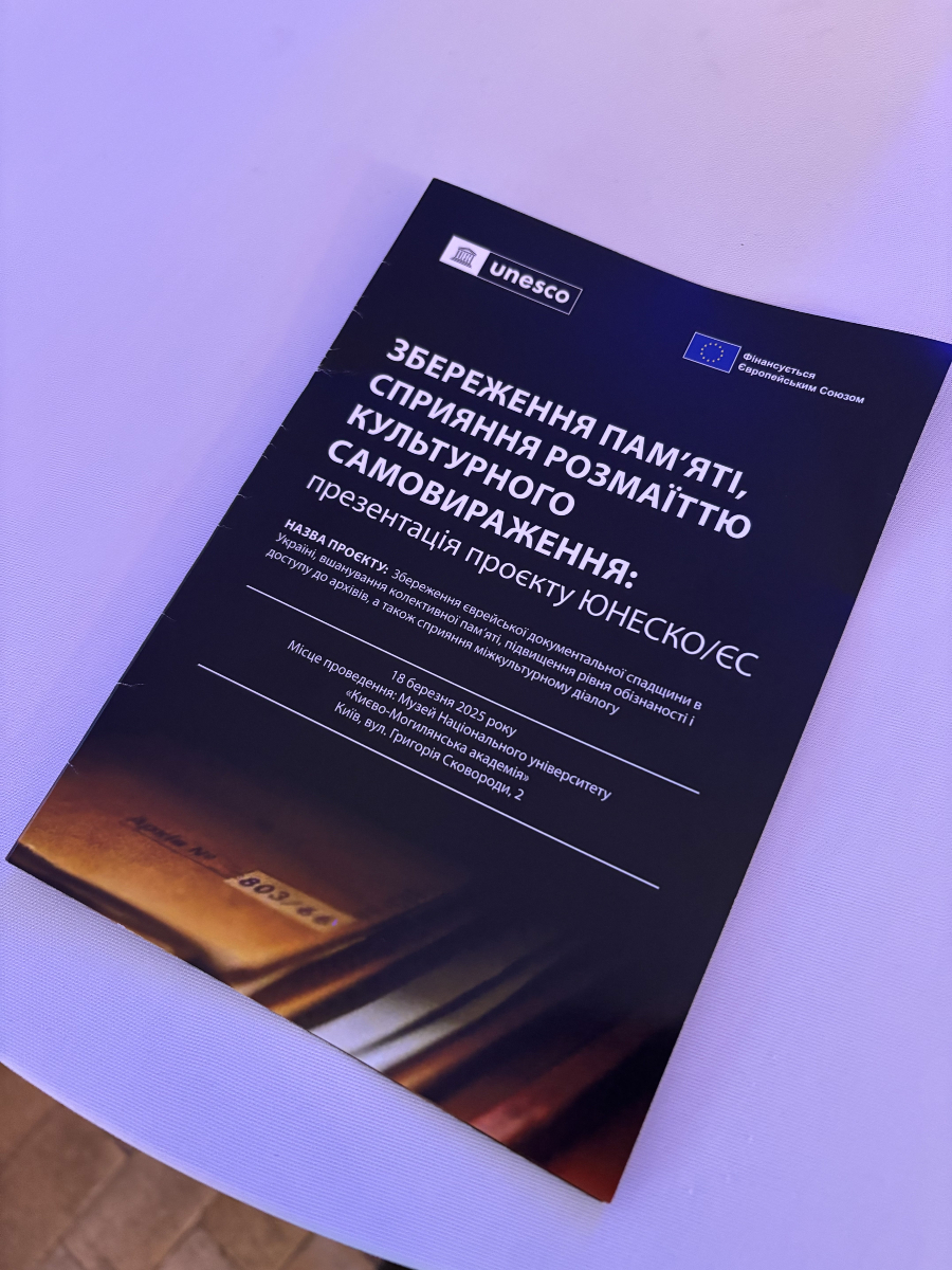 ЮНЕСКО в Україні за фінансування ЄС працюватиме над збереженням та оцифруванням єврейської документальної спадщини в 10 інституціях памʼяті, реставрацією документів, надаватиме відповідне обладнання. Крім того, міжнародна організація навчатиме українських фахівців зі збереження і підтримуватиме відповідні дослідження, фінансуватиме мистецькі проєкти і мультимедійні заходи.