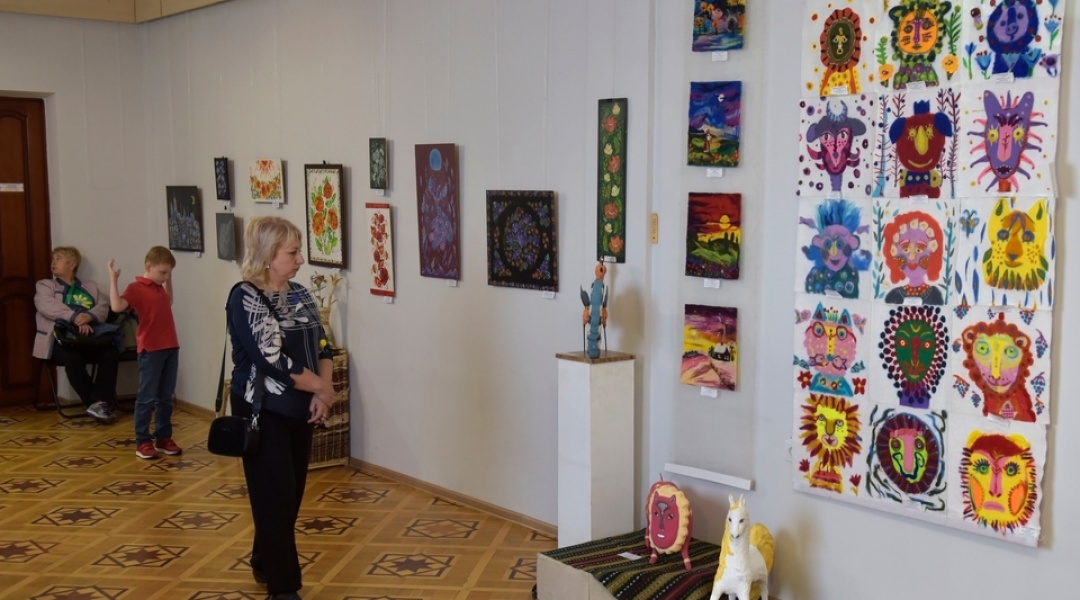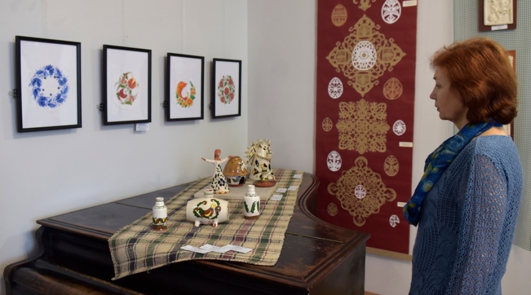 За її словами, в експозиції представлені роботи, виконані у різних видах декоративно-прикладного мистецтва. Зокрема, кераміка витинанка і валяння, а також форми керамічної скульптури і декоративний розпис.