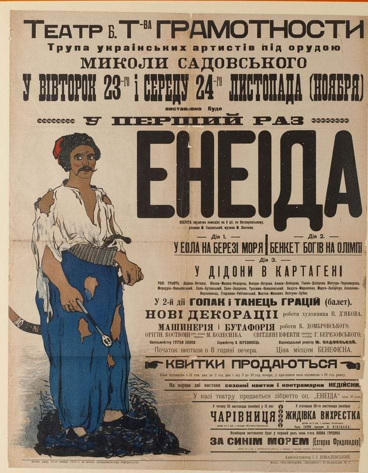 «Енеїда» - одна з найкращих опер українського класика Миколи Лисенка, яку вперше поставив у 1910 році Київський театр Миколи Садовського (розміщувався у Троїцькому народному будинку, де нині діє Національна оперета).