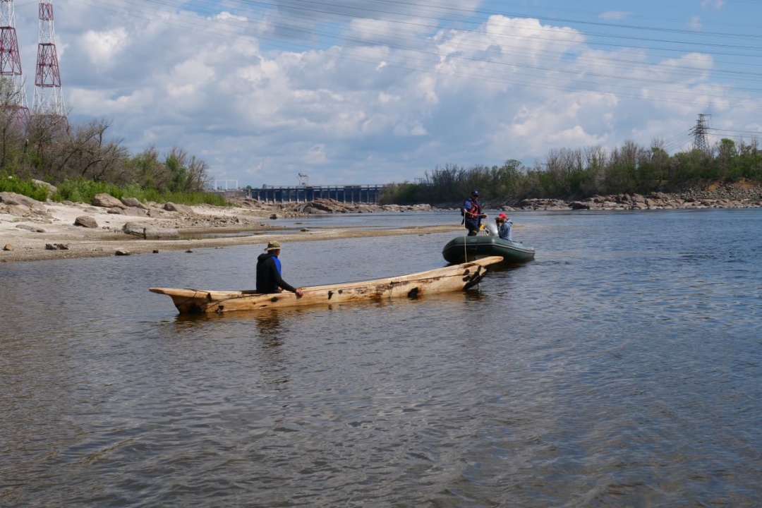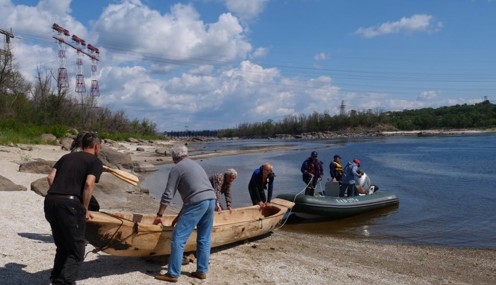 У Запоріжжі на воду спустили човен-довбанку, виготовлений у заповіднику «Хортиця»