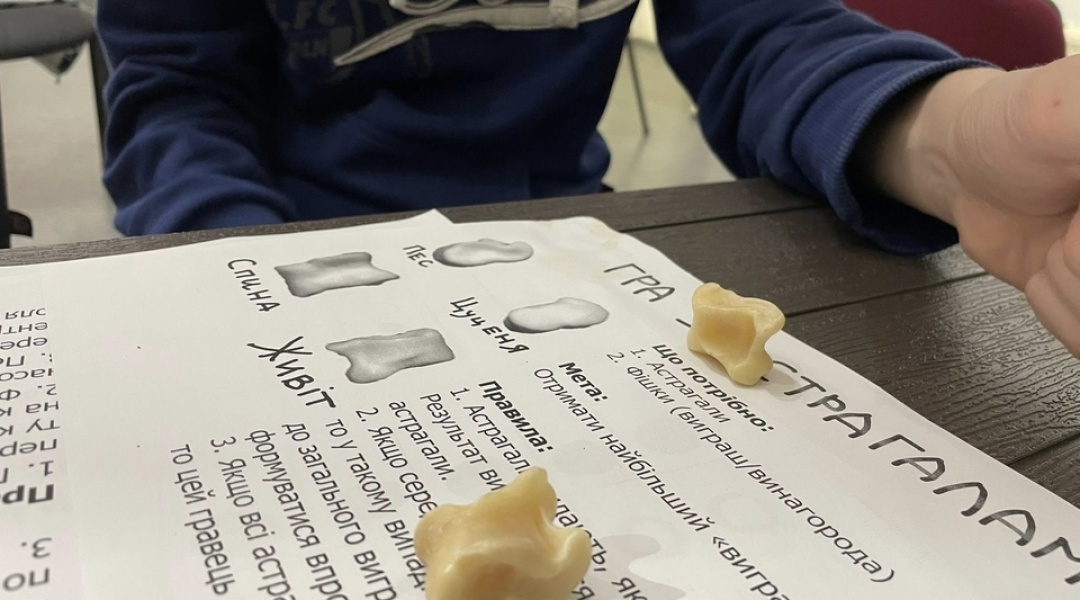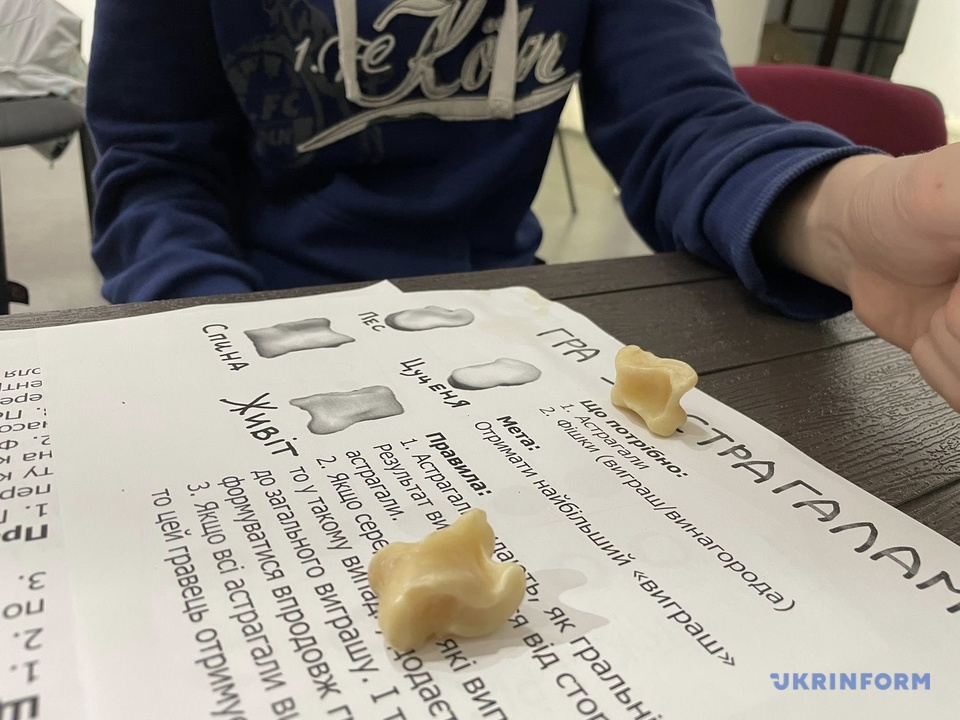 «Астрагали були важливою та культовою частиною життя людей. Їх могли також робити зі скла та глини. Це найвідоміша гра у греків, у неї було багато варіацій. Ми зіграємо в одну з простих, де переможець визначається за положенням кісток, що випали. Згадки про гру в кості є ще у період ранньої бронзи, це III - II тисячоліття до н. е. Під час гри в кості у людей виникає неабиякий азарт. Грають і дорослі і малі. Вчені знаходили астрагали з нанесеними позначками, астрагали з отворами та залитим у середину свинцем, щоб кістка була важчою та падала на «потрібний» бік. В давнину на таких кістках також ворожили. Моя бабуся родом з українського селища у Казахстані, ця гра там дійшла до наших часів та називається «бабки»», - додала Лобанова.