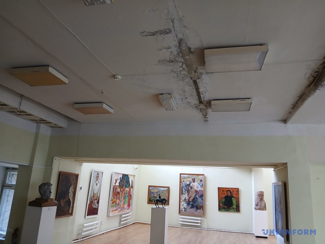 Переступаю поріг музею і згадую, коли побувала тут 7 років тому, його працівники скаржилися на дах, що протікає. Підіймаю голову і розумію, що все без змін: на стелі помітні щілини та пліснява. Нині – це найбільша проблема музею, адже картини не люблять вологи.