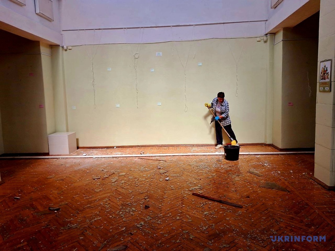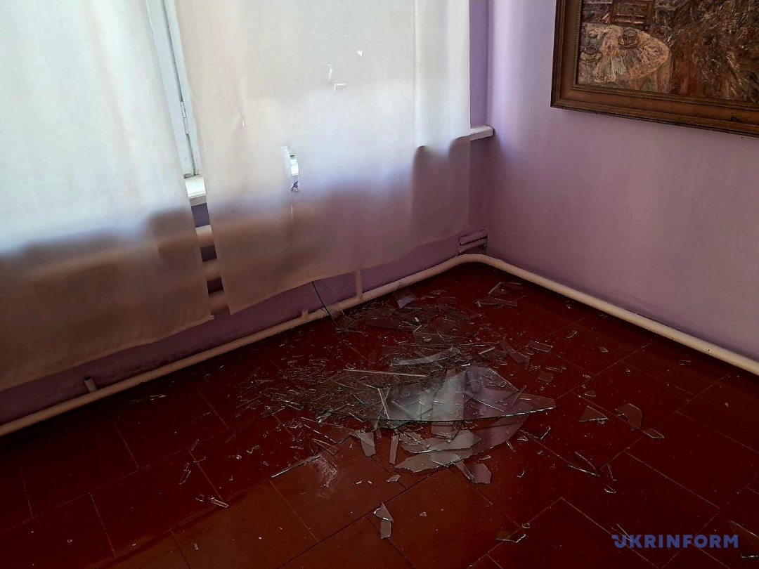 За її словами, найбільше хвилювалися за експонати, але вони дивом уціліли. Побилася лише ваза з колекції заслуженої художниці України Наталії Аксьоненко, а також уламки скла пошкодили одну з картин, яка підлягає реставрації.