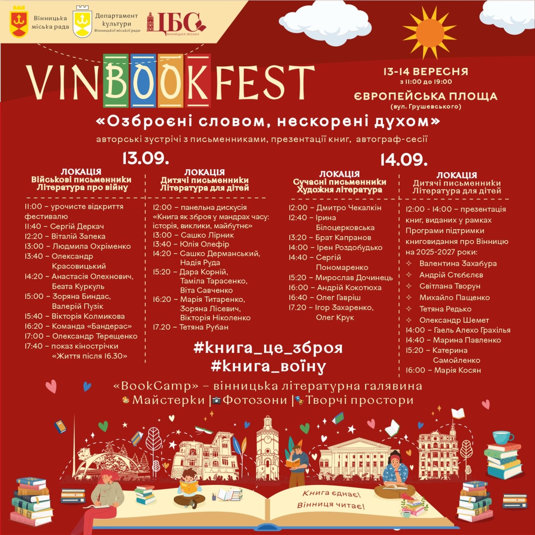 Про це йдеться на сторінці фестивалю VinBookFest у Фейсбуці, передає Укрінформ.