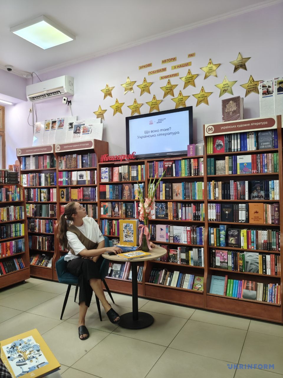 Під час зустрічі письменниця розповіла про процес створення енциклопедії "Що воно таке? Українська література", пошук ідей, які допоможуть познайомити підлітків і дорослих із сучасним поглядом на українську літературу. Зокрема, у книзі є розділ про вуса українських письменників, про їжу та напої у творах, про те, де живуть письменники і звідки беруться назви книжок, з чого складається детектив, як читати комікс? Авторка видання пояснює поняття з літератури на прикладах українських творів та доповнює сучасними ілюстраціями.